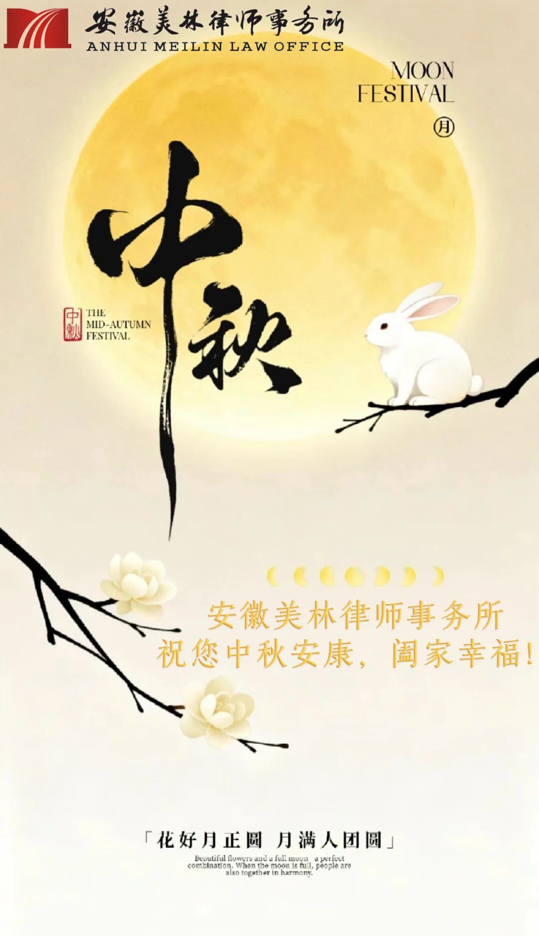 金秋朗月,情满中秋。安徽美林律师事务所谨以澄澈月色为礼,向您与家人致以最温暖的佳节问候!